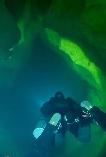 En la incursión realizada el fin de semana pasado, los buzos llegaron hasta el final de la cueva inundada de unos 120 metros de diámetro que requiere equipo adecuado para explorarla mas, debido a la pendiente escarpada.